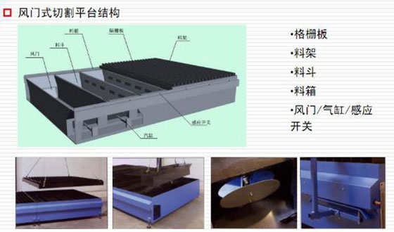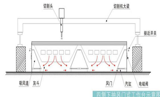 切割平臺的抽風系統有效集中在切割機所在區域(寬度為切割平臺寬度,長度方向約1m),該區域隨切割頭移動而移動,有效節省了抽風量。